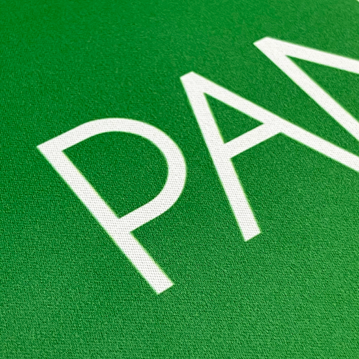 Trykk av fanen gjøres ved fullfarge varmetransfer-trykk.
